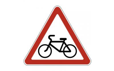 Знак 1.24 предупреждает водителей о приближении к участку дороги, где проезжая часть пересекается с велосипедной или велопешеходной дорожкой.